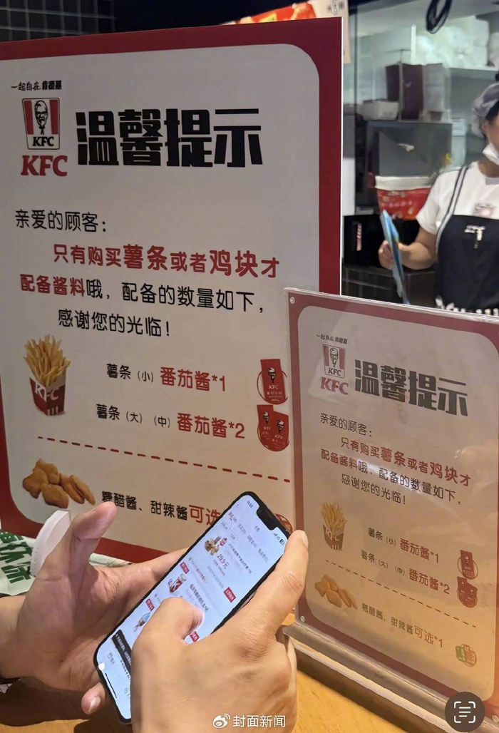 肯德基发布“限酱令”引热议 线下门店:避免浪费 消费者有要求会给