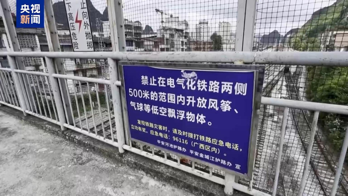在广西,柳州铁路公安处金城江站派出所民警在线路巡查中发现,一名男子正在人行天桥上放飞民用无人驾驶航空器。