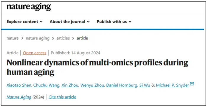 ①Shen, X., Wang, C., Zhou, X. et al. Nonlinear dynamics of multi-omics profiles during human aging. Nat Aging (2024).