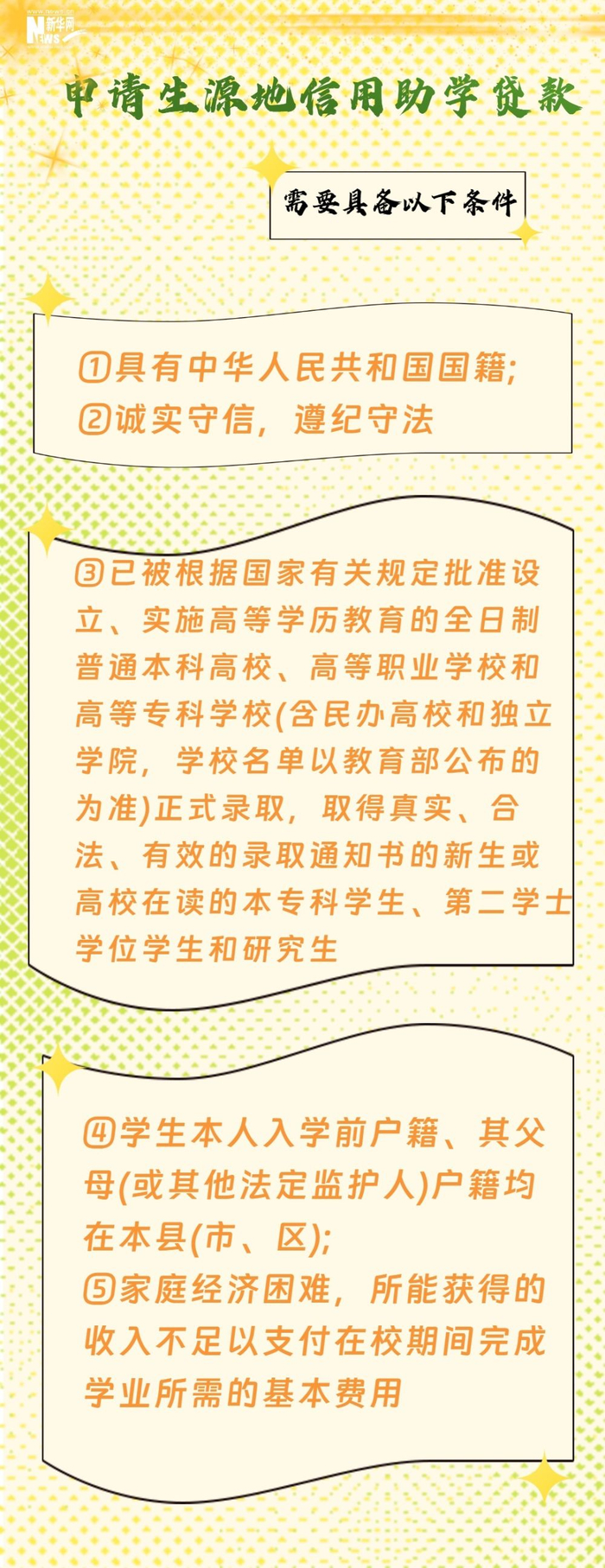 4.请借款学生和共同借款人携带以下申贷材料,前往县级学生资助管理部门办理手续。①借款学生与共同借款人各自的身份证原件、户口簿原件;②录取通知书(或学生证)原件或学信网学籍在线验证报告;③《国家开发银行生源地信用助学贷款申请表》,未通过预申请的学生还需要携带《家庭经济困难学生认定表》原件。