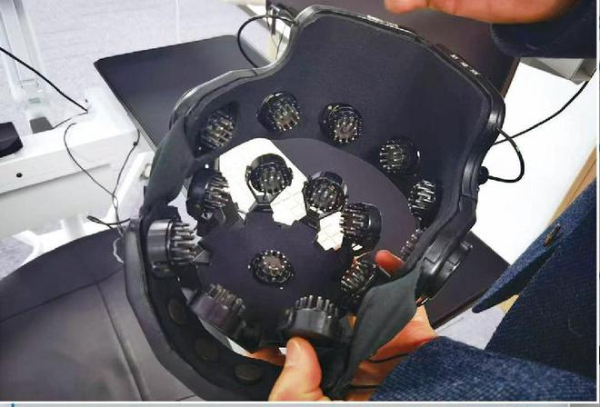 脑电帽是一种传感设备,一个"爪子"就能采集一道脑电信号。吕宝粮介绍,在如何采集脑电信号这一关键技术路线的选择上,零唯一思最终选择了非侵入的方式。尽管非侵入式设备采集的脑电信号比较难处理,但是更安全,适应人群更广。