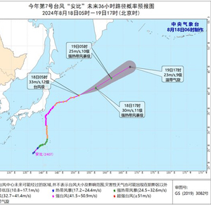 预计,“安比”将以每小时40-45公里的速度向东偏北方向快速移动,强度逐渐减弱,并将逐渐变性为温带气旋,未来对我国海域无影响。