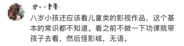 一位观众在猫眼APP上开设提问:8岁小朋友适合看吗?竟引来了近700个网友回答,绝大多数是批评家长的。