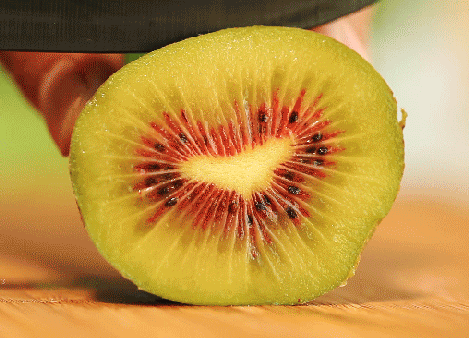 红心猕猴桃是猕猴桃甜度最高的,其甜度可达20度+,真是甜到心坎里。