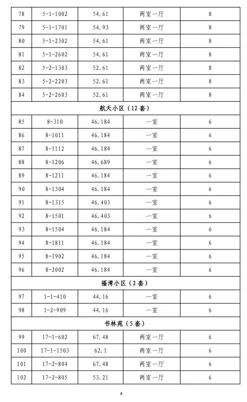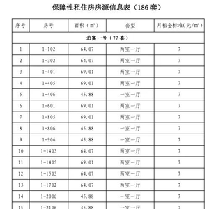 3、书林苑项目位于纬西路南侧、天冠大道以西。本次可分配的房源共计5套,户型:两室一厅,每月租金6元/㎡。