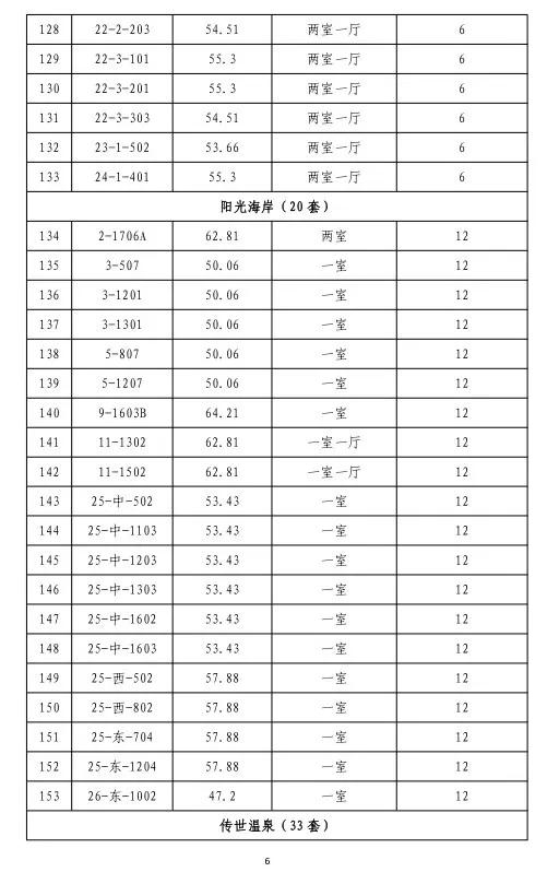 6、阳光海岸项目位于南都路以西、光武路以北。本次可分配的房源共计20套,户型:两室一厅、一室一厅,每月租金12元/㎡。
