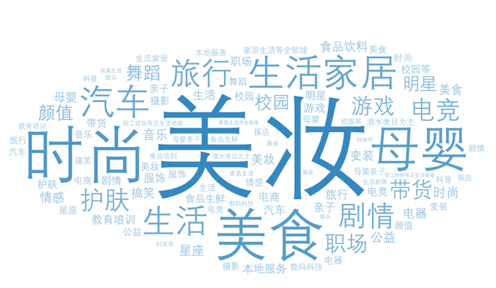从运营平台的布局来看,他们广泛活跃在抖音、快手等短视频赛道,以及小红书、微博、微信等社交平台,并呈现出多栖化的平台分布。根据入选者信息,他们主营平台排行依次为:抖音、快手、小红书、微博、微信、哔哩哔哩等。在作品创作上,入选者主要围绕泛生活领域展开,其中,美妆领域居于领先地位,提及率高达44%,其次为时尚、美食、母婴、生活家居等赛道。