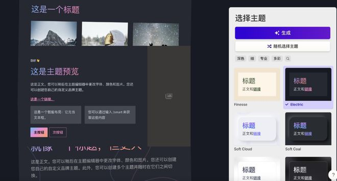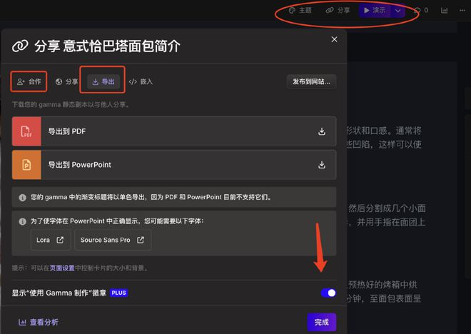 在导出之前,主题可以再切换,分享功能可以添加协作者。
