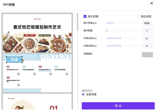 输出方面,可以生成拼图,也可以下载为ppt或pdf。