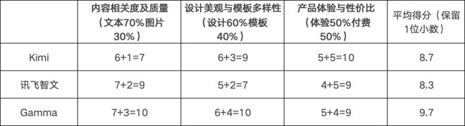 整体上,Gamma在3个维度的总体评分中胜出,其硬伤是带有Gamma的logo,一些特定商用用户可能必须付费。