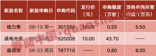 只新股发行。周一:佳力奇;周二:成电光信;周五:益诺思。
