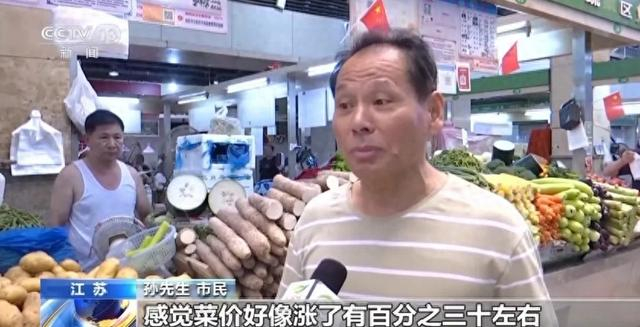 记者在江苏南京进香河集贸市场也看到,豇豆、四季豆、茄子等蔬菜价格略有上涨,黄瓜、鸡毛菜、菊叶涨幅明显。市民孙先生表示,当天买了毛豆、凉粉、豆腐、大白菜,“感觉菜价涨了百分之三十左右”。