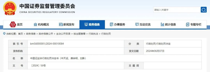 中国证监会行政处罚决定书(中天运、唐宗明、刘影)