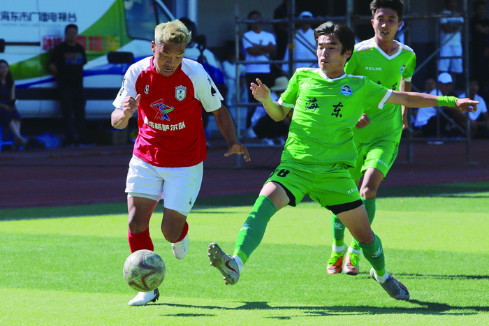一开场,海东拉面队就强势进攻,比赛进行到15时04分,青海拉面队占据主场优势,以一记漂亮的射门突破防线,迎来“开门红”。20分钟后,青海拉面队在前锋余佳蔚和68号前卫梁远红的默契配合下再攻进一球,上半场以2:0的比分告一段落。