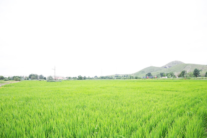 翁牛特旗稻田进入抽穗期,青翠欲滴。