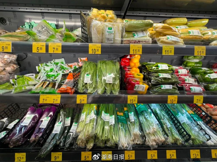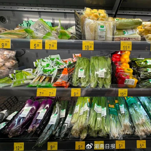 长沙某沃尔玛超市内的供港蔬菜。侃财君摄🥬 今夏蔬菜价格为何持续上张?湖南省商务厅发布数据显示,8月5日至11日,蔬菜整体零售均价7.73元/公斤,上涨2.7%,较前一周涨幅放宽1.3个百分点。至此,全省蔬菜整体零售均价迎来“七连涨”。重点监测的7大类30个蔬菜品种价格呈“4跌26涨”。其中,油菜、生菜、莲藕和山药价格下跌;芹菜、大白菜、菜花、白萝卜、莴笋、黄瓜、苦瓜、南瓜、豆角和西红柿价格上涨,其中上涨最多的为莴笋、黄瓜、苦瓜,分别上涨8%、8.8%、9.1%。