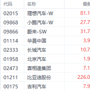 政策利好提振港股汽车股 理想汽车一度涨近7%