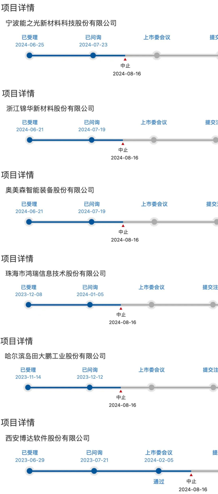 券商中国记者注意到,8月16日当晚,天职国际在北交所有6个IPO项目进入“中止间”。沪深交易所审核信息尚未更新。