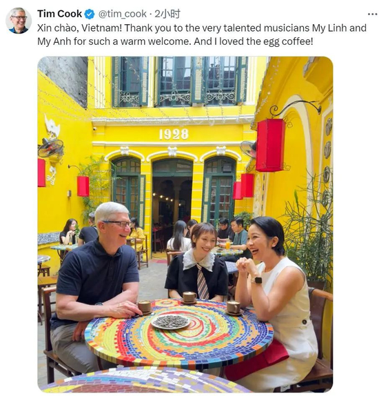 今年4月,苹果库克到访越南,与此同时,苹果宣布将增加越南供应链的投资。图/库克社交媒体动态截图