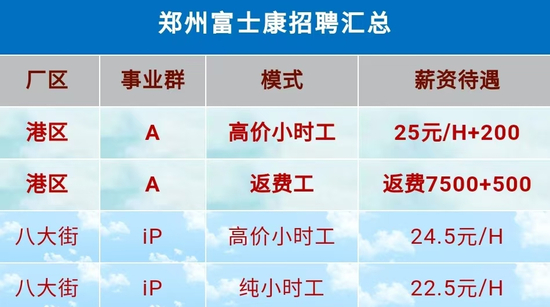 网传郑州富士康招聘工资。图/“郑州富工联招聘”公众号