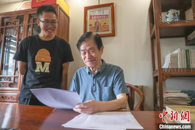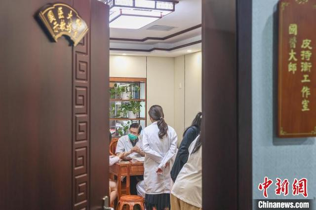 2024年8月19日,是第七个“中国医师节”。在位于江西南昌的江西省中医院,今年已经84岁高龄的医生皮持衡,仍坚持出门诊给患者看病。皮持衡是中国中医科学院学部委员,首届全国名中医和第四届国医大师,尤其擅长肾脏疾病的临床辨治。皮持衡出身于中医世家,从医近60年,在他看来,救死扶伤是医生的天职,尽管自己年事已高,也坚持出门诊,希望能尽己所学为病人服务,为人类健康尽微薄贡献,同时他也希望能多培养学生,让中医代代相传。图为8月19日,皮持衡(图右)在工作室里和学生交流讨论学术论文。中新社记者 刘力鑫 摄