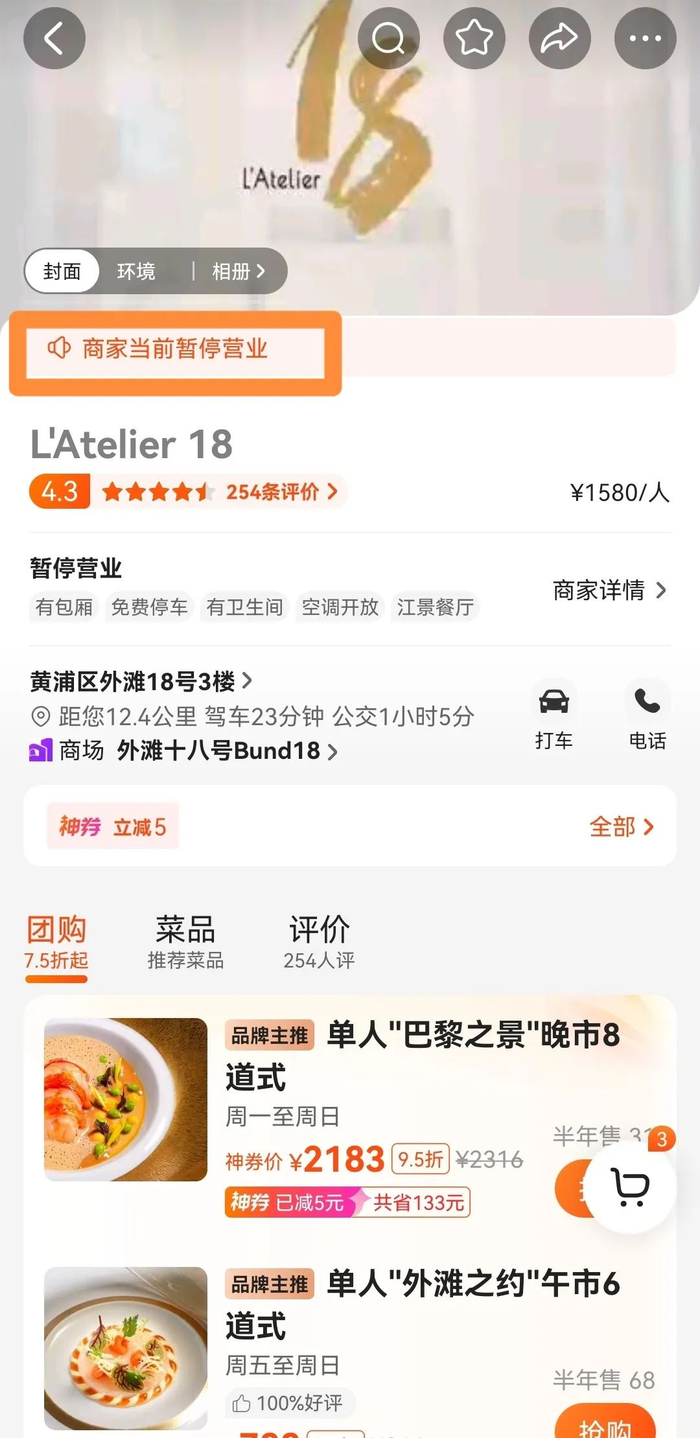 人均1580元,“外滩十八号”停业了?知情人士透露→