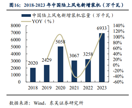 随着全球对可再生能源需求的不断增加及我国对清洁能源发展的高度重视,风力发电产业迎来了快速发展期。根据市场调研机构数据,2016-2021年,中国风电行业累计装机规模持续上升,年增幅均保持在10%以上;在经历了2021-2022年的新增装机低迷期后,2023年中国陆上风电新增装机容量重拾增长势头,全年新增装机6933万千瓦,同比增长113%。这一趋势直接带动了对风电变桨伺服系统的需求增长。
