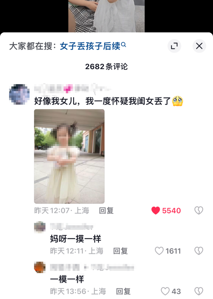 近日,上海的王女士发文称,一名博主发了在地铁站发现一个小女孩走失、报警帮助其寻到父母的视频,亲友刷到这个视频后发给了王女士,称该小女孩和王女士女儿长得很像。而王女士的女儿是试管婴儿,目前4岁,和对方小女孩确实高度相像。王女士不禁产生了怀疑,想找到对方确认是否有血缘关系。