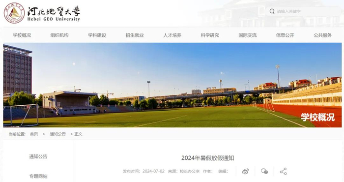 1.在校区学习的学生从7月15日起开始放假,9月1日前返校注册,9月2日正式上课。2024级新生于8月31日报到。