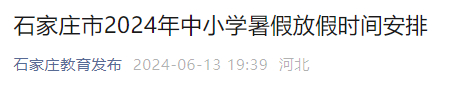 全市义务教育阶段学校于2024年7月6日(星期六)正式放暑假,高中阶段学校于2024年7月13日(星期六)正式放暑假。2024年秋季学期于2024年9月1日(星期日)正式开学。幼儿园参照执行。
