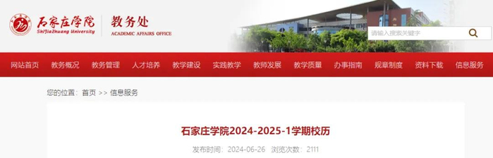 2024年8月25日全体老生返校报到,8月26日上课。新生报到时间另行通知。