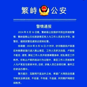 经调查:2024年8月16日21时许,砂河镇居民卢某酒后未购票欲强行进入憨山景区,工作人员多次劝阻,卢某拒不配合,谩骂、撕扯工作人员并故意裸露身体,扰乱景区工作秩序。在制止卢某的违法行为过程中,景区工作人员杨某等人与卢某发生肢体冲突。目前,涉案人员已全部归案,案件正在依法办理中。