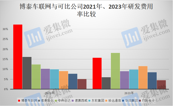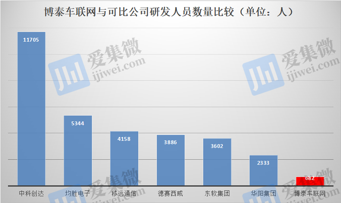 不过,在研发人数上,博泰车联网并不占优势,根据披露数据,截至2023年末,其研发人员为682人,占员工总数的比重为40.2%。而可比公司中,研发团队规模普遍较大,其中,中国创达接近1.2万人,均胜电子也超过5300人,德赛西威、移远通信同样拥有一支规模约4000人的研发队伍。