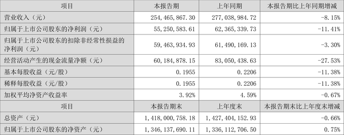 根据半年报,公司第二季度实现营业总收入1.46亿元,同比下降9.44%,环比增长33.71%;归母净利润3374.57万元,同比下降16.53%,环比增长56.92%;扣非净利润3716.99万元,同比下降5.68%,环比增长66.73%。