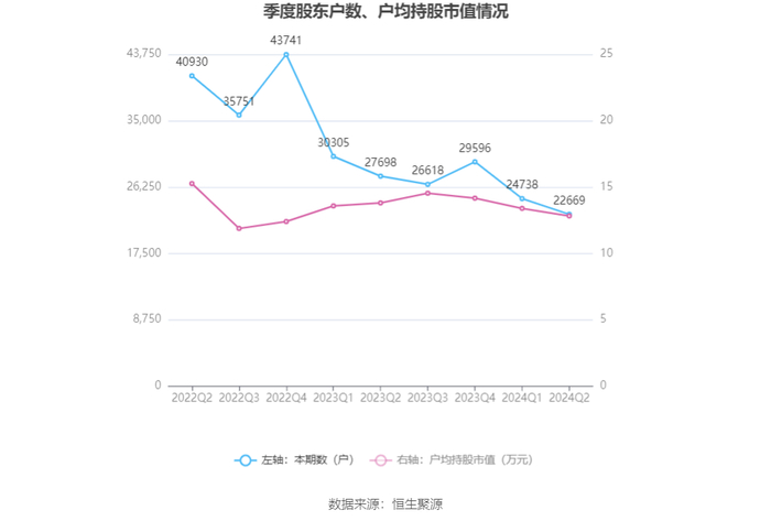 筹码集中度方面,截至2024年上半年末,公司股东总户数为2.27万户,较一季度末下降了2069户,降幅8.36%;户均持股市值由一季度末的13.40万元下降至12.83万元,降幅为4.25%。
