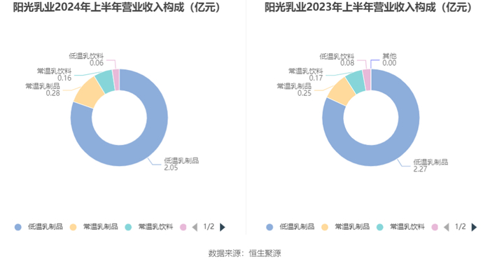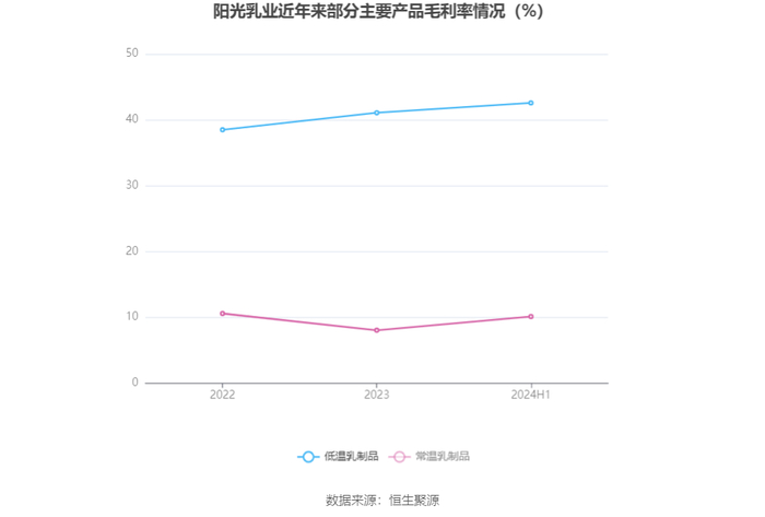 分产品看,低温乳制品、常温乳制品2024年上半年毛利率分别为42.58%、10.13%。