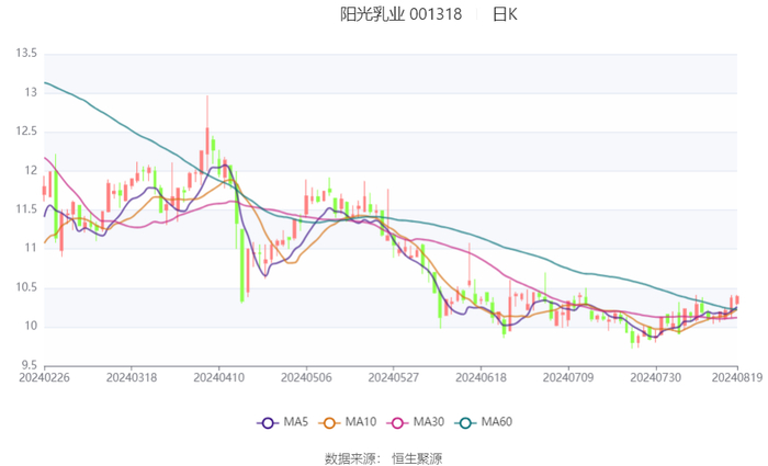 阳光乳业:2024年上半年净利润5525.06万元 同比下降11.41%