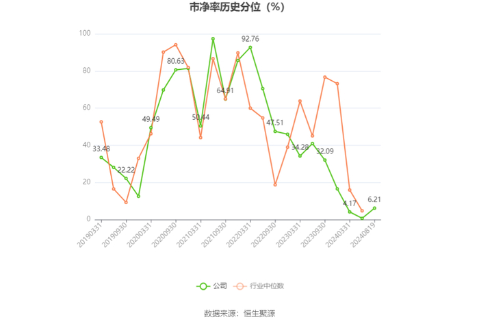 从存货变动来看,截至2024年上半年末,公司存货账面价值为17.55亿元,占净资产的21.62%,较上年末减少2.02亿元。其中,存货跌价准备为1.7亿元,计提比例为8.85%。