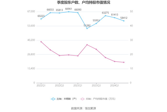筹码集中度方面,截至2024年上半年末,公司股东总户数为5.84万户,较一季度末下降了3001户,降幅4.89%;户均持股市值由一季度末的15.12万元下降至14.52万元,降幅为3.97%。