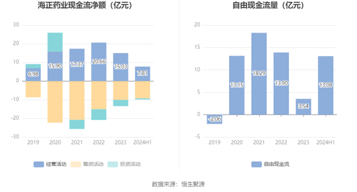 进一步统计发现,2024年上半年公司自由现金流为13.08亿元,上年同期为-2.69亿元。