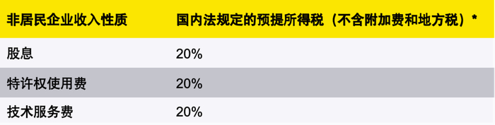* 如有协定优惠税率,则在满足协定要求的情况下, 可适用协定优惠税率