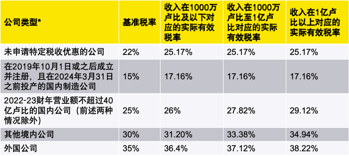 印度2024-25财年企业所得税税率