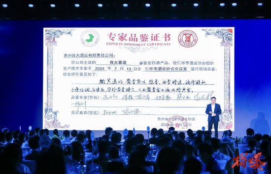 在7月13日仁怀举行的专家品评会上,以吕云怀为代表的7位专家,品鉴容大酱酒(全坤沙)之后,给出了“微黄透明、酱香突出、陈香、曲香舒适,酒体醇和、干净协调,后味长、空杯留香持久,大曲酱香型白酒风格典型”的评价。