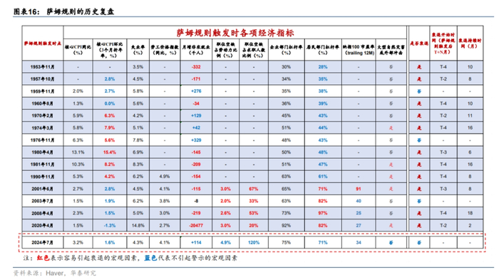萨姆规则只是确认经济陷入衰退的经验规则。1953年以来萨姆规则14次被触发,有3次美国在一年内陷入衰退,大如我们在《再论美国不衰退的逻辑》(2024/8/19)中所述,目前的经济基本面尚不支持萨姆规则的逻辑。