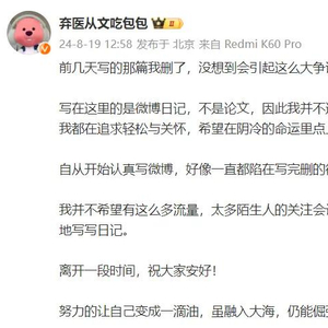 记者注意到,@弃医从文吃包包 目前的微博认证为情感博主,但分类属于健康医疗,从此前的文章中可以看出他疑似是北京某三甲医院的一名医生。8月18日上午,记者尝试通过各种途径联系@弃医从文吃包包 核实相关问题,但截至发稿时都未得到回应。