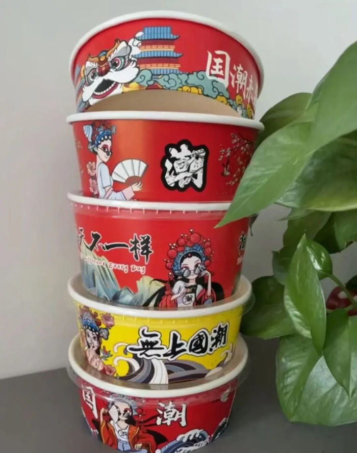 阴差阳错下,“国潮少女”图成为外卖包装生产流水线上最常见的图案。