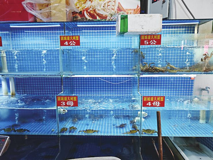闵大叔告诉记者,他们家的大闸蟹都是产自固城湖,品质比较高,“大概还有两周,大闸蟹就要大量上市了,我们近期也在向合作的饭店宣传。”闵大叔妻子杨阿姨向记者表示,今年的螃蟹行情相较于去年要差一些,“去年这个时候,我们的大闸蟹要卖到40元一斤,今年只能卖30元一斤。”