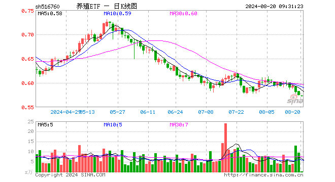 养殖ETF(516760)业绩比较基准为中证畜牧养殖指数收益率,管理人为平安基金管理有限公司,基金经理为翁欣,成立(2021-03-04)以来回报为-42.49%,近一个月回报为-6.70%。