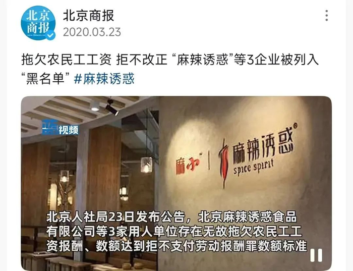 一时间,麻辣诱惑陷入了危机,大量门店关闭,供应商上门讨债,还因为欠薪被列入“黑名单”。