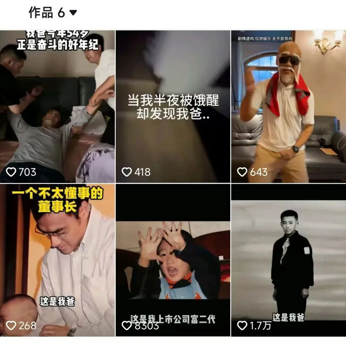 今年6月,以韩东儿子视角拍的视频“破产老登”开始更新,拍摄方式和前段时间爆火的“富二代故事”类似,都是主动玩自己的梗博眼球,但更新了2个月只有五千多粉丝,没有迎来想象中的暴涨。